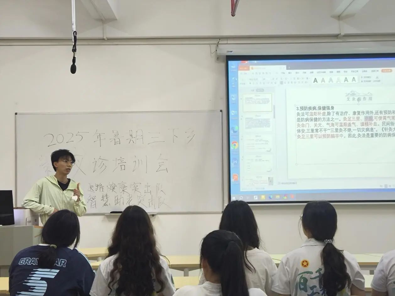 动员大会结束后,"智慧助老突击队" 全体成员于当日下午迅速集结至 S3—501 实训室,参与由李荣浩老师主讲的中医康复适宜技术专题培训。此次培训紧密围绕乡村老年人因智能设备使用引发的健康问题,针对性开展颈肩腕部保健与常见痛症调理技术教学。