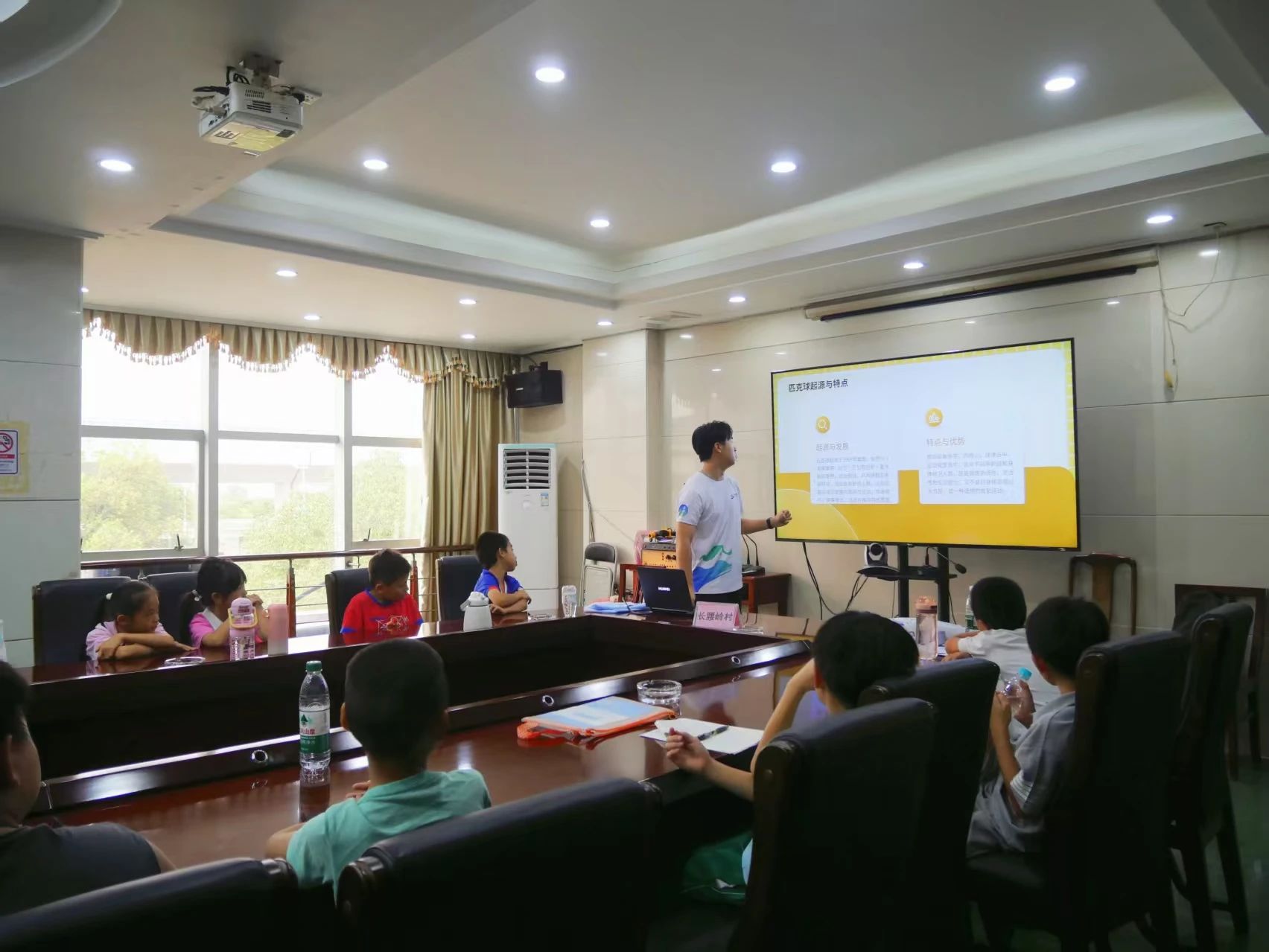 郑舒伟同学带领大家了解匹克球的起源、球具、基本规则和运动注意事项,讲解简洁有趣,结合互动提问,激发了孩子们浓厚的兴趣。
