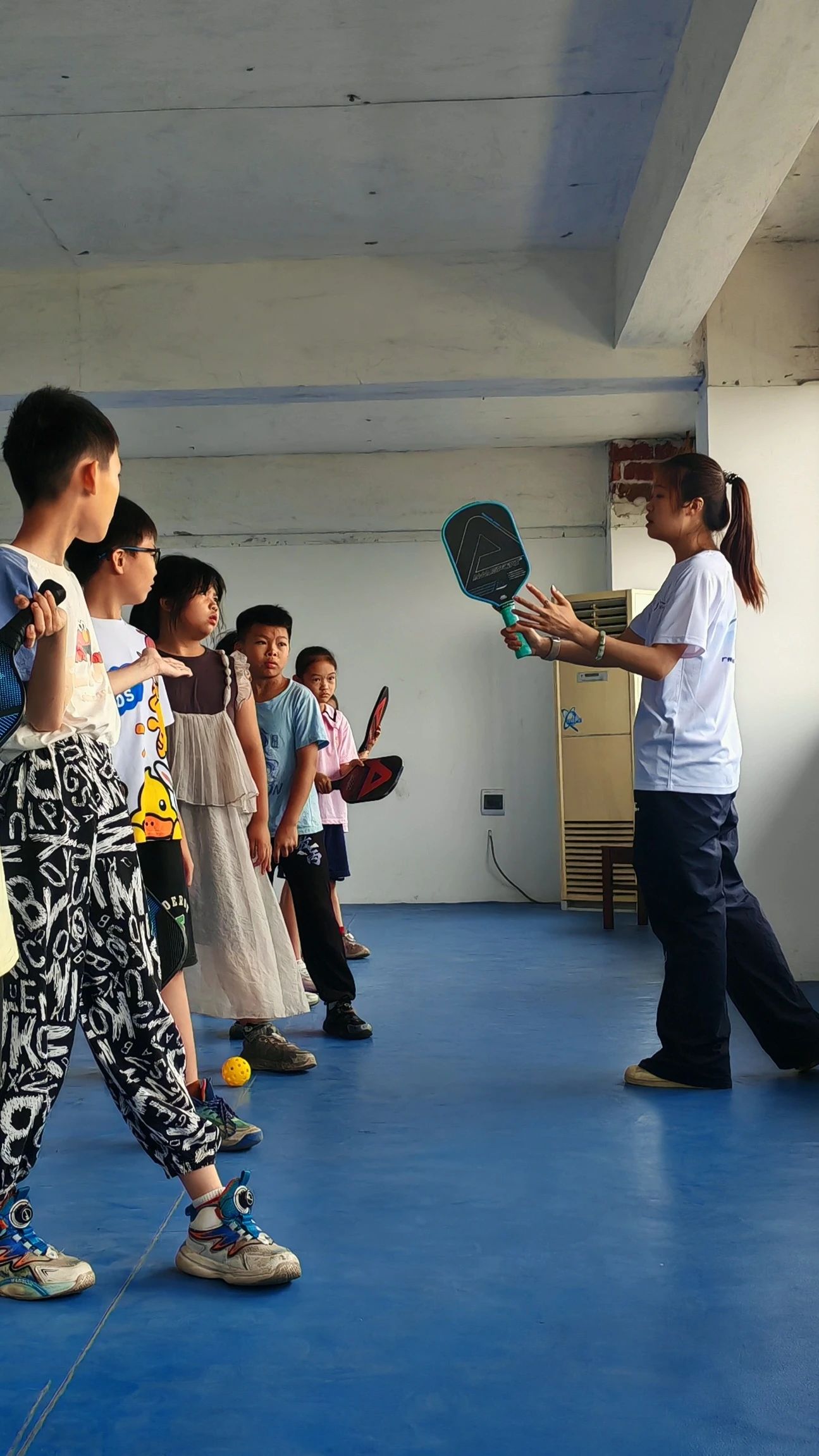 从安全拉伸到击球姿势,从器材识别到场地规则,孩子们认真聆听、积极举手,课堂气氛既轻松又专注。