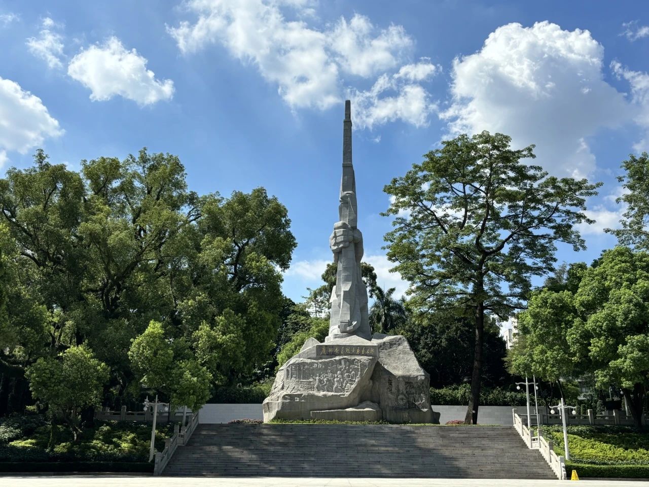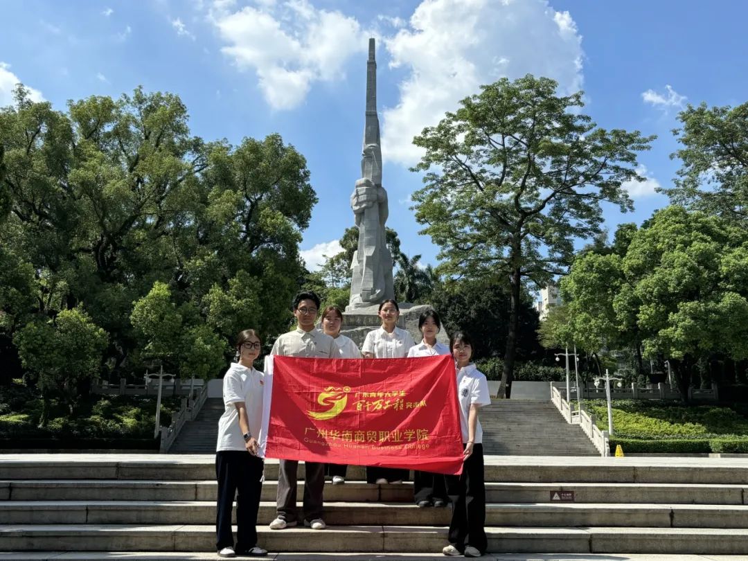 成员们在巍峨的广州起义烈士纪念碑下仰头看直插云霄,“广州起义烈士永垂不朽” 几个鎏金大字庄严肃穆,瞬间把成员们的思绪拉到那段烽火连天的岁月。三下乡的队员们怀着崇敬之情,默哀致敬。