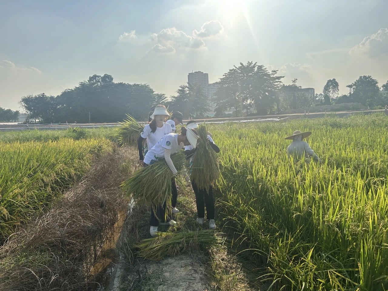 返程途中,看到几位村民正在村头谷场忙着搬运刚收割的稻谷,大家立刻上前搭把手,汗水浸湿了队员们的衣衫,却挡不住大家干活的热情,村民们不停道谢,质朴的笑容里满是暖意。