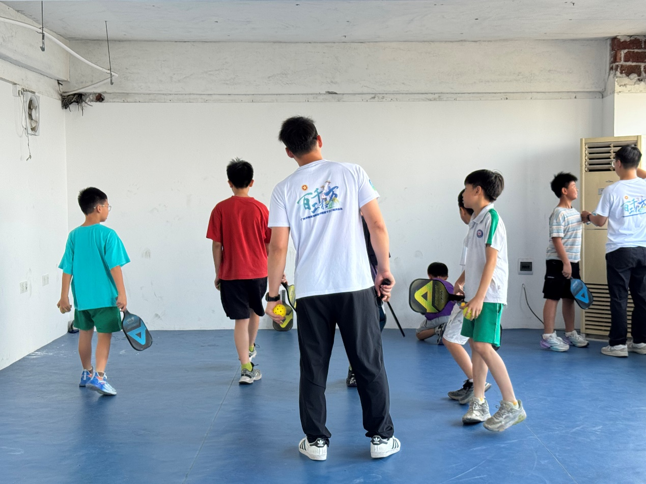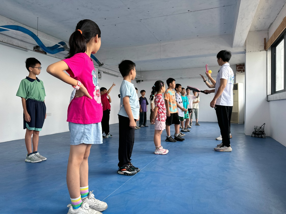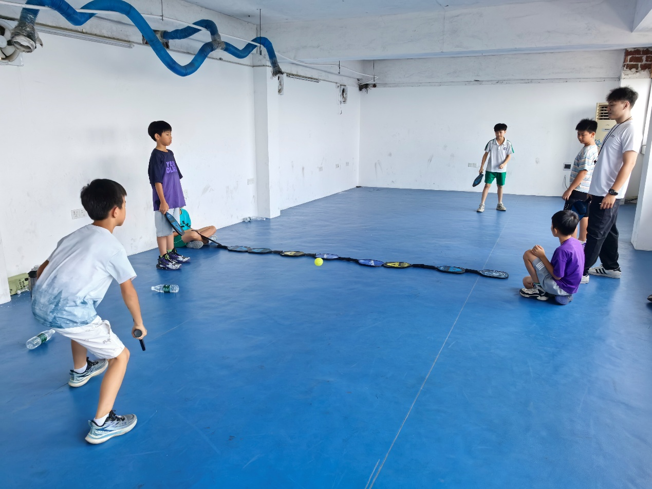 在掌握基本规则后,孩子们正式分组上场进行实战训练。初始几轮略显生涩,有的出界、有的漏球,但在反复尝试中,他们迅速适应节奏。