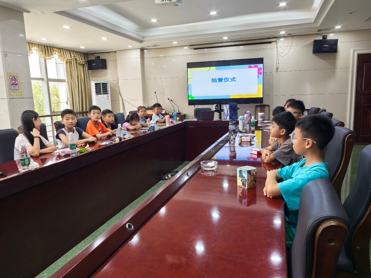 上午10点30分,结营仪式在村会议室正式举行。屏幕上打出“结营仪式”字样,孩子们整齐端坐,目光专注,现场气氛庄重又温馨。