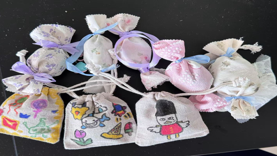 活动现场,充满了温馨欢乐的氛围。我们提前准备好色彩鲜艳的布料、柔软的彩带、干燥芳香的艾草,以及可描绘出装饰香囊的精美图案。我们耐心地向大家讲解香囊制作步骤,老人们听的认真,孩子们也踮着脚尖、伸长脖子,满眼都是好奇与期待。