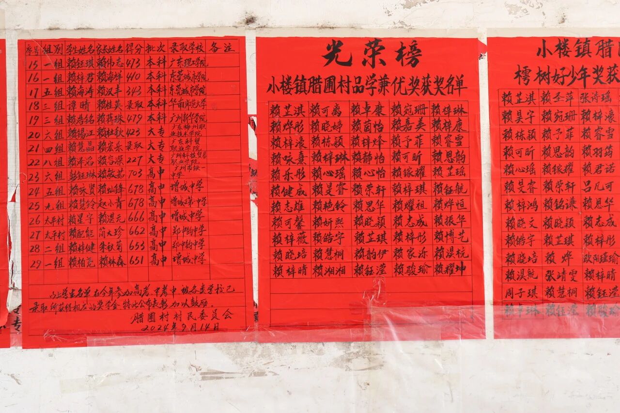 拍摄间隙,土灶柴火气混着饭香勾人走入老巷;墙上红底黑字荣誉榜,藏着家长期许;老榕树下,长辈摇扇纳凉,见突击队路过笑着招呼,皱纹里漾着烟火暖。这些不经意的遇见,让队员们突然意识到:斑驳的城墙砖,灶台前升腾的热气、榕树下的粉笔字、果园里的分拣声......构成腊圃村鲜活的“文化肌理”。