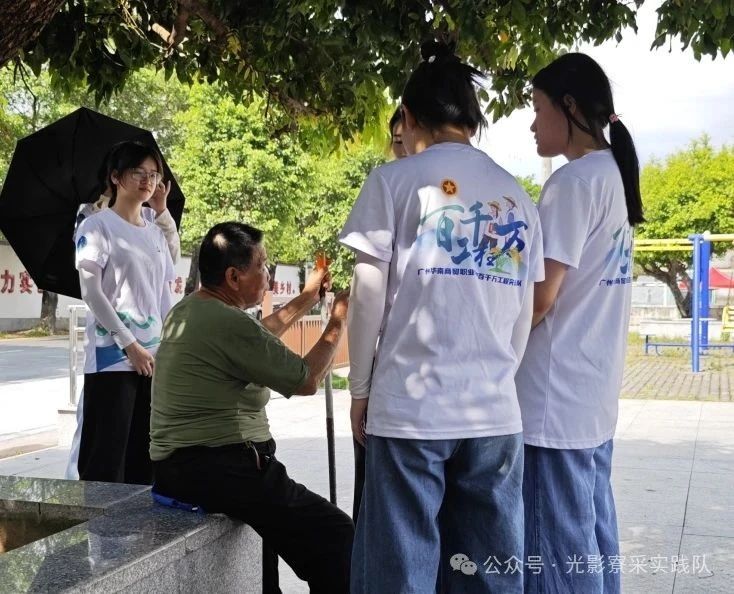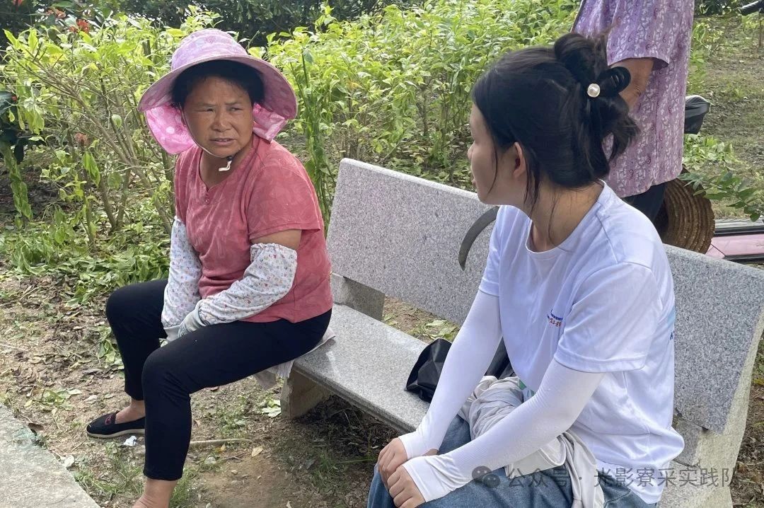 与此同时,实践队第三小组走进村间巷道、古旧祠堂,在政府推动的“乡音传承与乡村发展”探索中,与村民唠家常。抚摸祠堂梁柱上的岁月痕迹,听老人讲寮采村传说、聊变迁历史,从萧氏来源到生活新貌,乡音里满是对故土深情,更藏着对政府引领、青春助力下美好生活的向往。