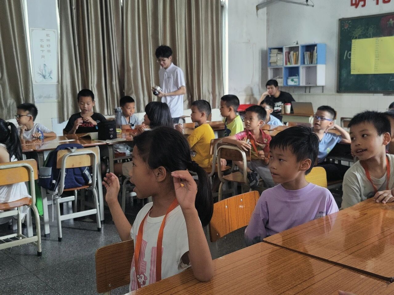 清晨的阳光温柔地洒进教室,孩子们好奇的目光与队员们的笑容相遇。这场支教拉开了帷幕。队员的自我介绍让孩子们脸上露出了笑脸,他们大声地喊着“老师们好”。