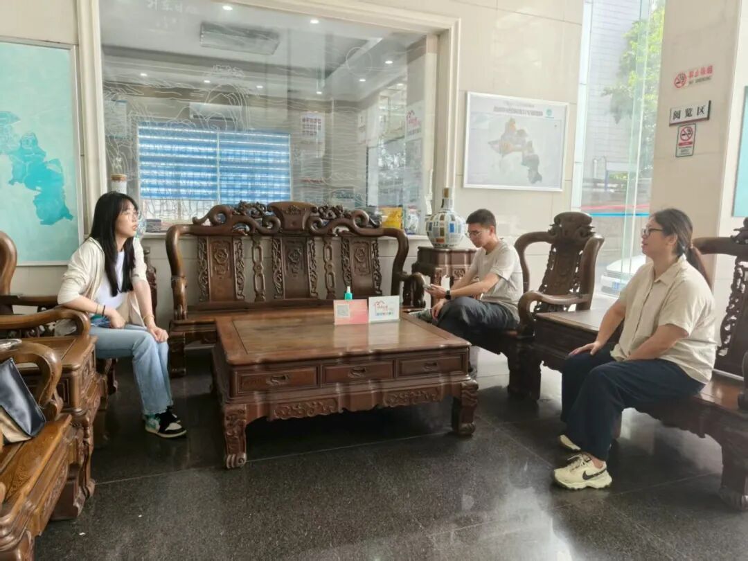 早上八点,突击队两位指导老师率先抵达长腰岭村党群服务中心,在大厅与村党委委员兼村委副主任龙东萍和村党建工作人员周俊景两位村干部进行围桌磋谈,通过对此次活动内容的了解,村委给出了合理建议,对活动内容进行“瘦身”,并且带领两位指导老师对活动开展场地进行介绍并交代一些注意事项,同时希望实践队调研过程中分发预防“两热”的册子,传播“科学防蚊”的方法。最后表示十分愿意配合并协助此次活动的开展。