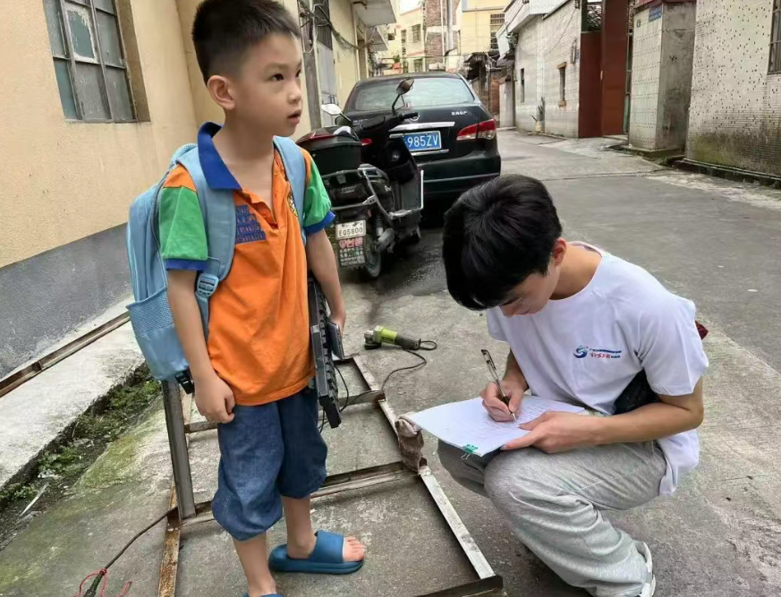 与此同时,街访小组穿梭村庄小巷,围绕儿童安全与教育、护眼护牙知识、基础安全知识、儿童急救知识四个方面展开调研,面对小朋友,他们蹲下身子,轻声问话,让冰冷的问卷题目变成有温度的问答,让每一次对话都成为悄悄守护童心的温暖约定。