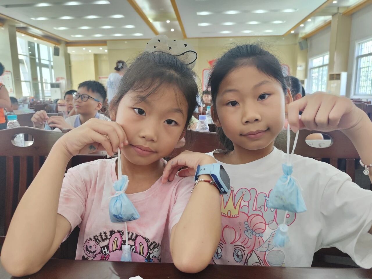 中药香囊制作环节,用于预防“两热”的药材散发着草木清香。提前裁剪好的口罩成了安全的“小口袋”,孩子们捏着药材小心翼翼装入,指尖沾染的药香里,藏着对健康的懵懂认知,也藏着动手创作的雀跃。