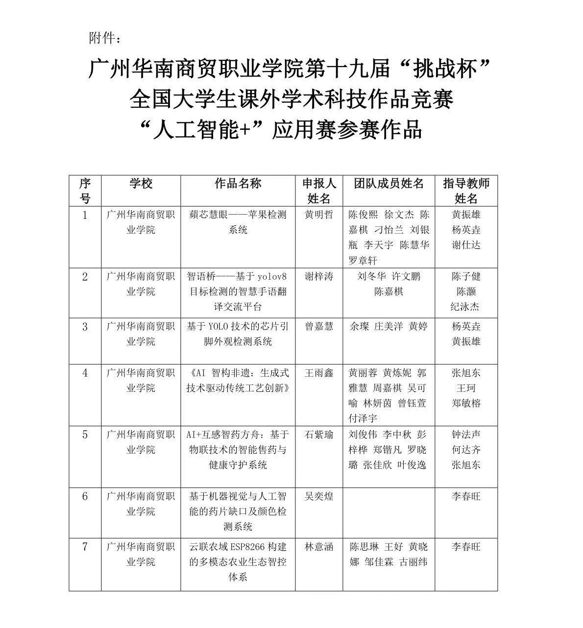 广州华南商贸职业学院第十九届“挑战杯”“人工智能 +”应用赛参赛作品公示