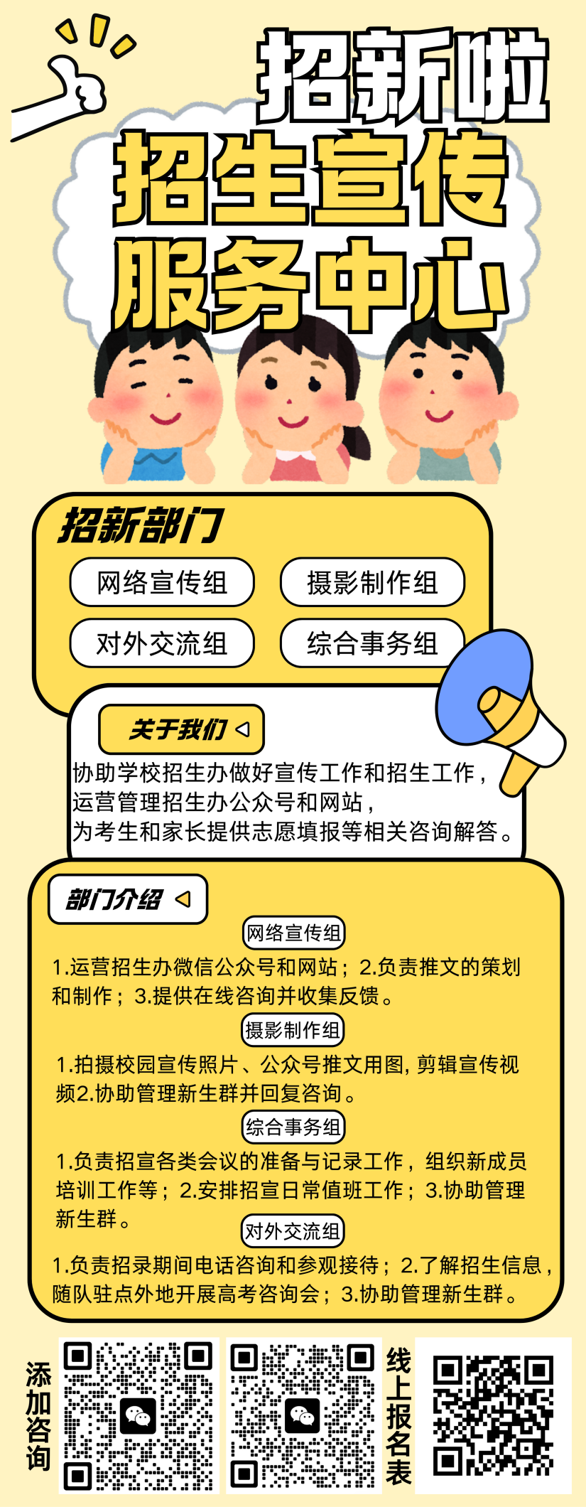 团委招新火热进行中!加入招生宣传服务中心等部门,化身学校 “形象代言人”,与校共成长,让大学从 “招生” 起步便不凡。
