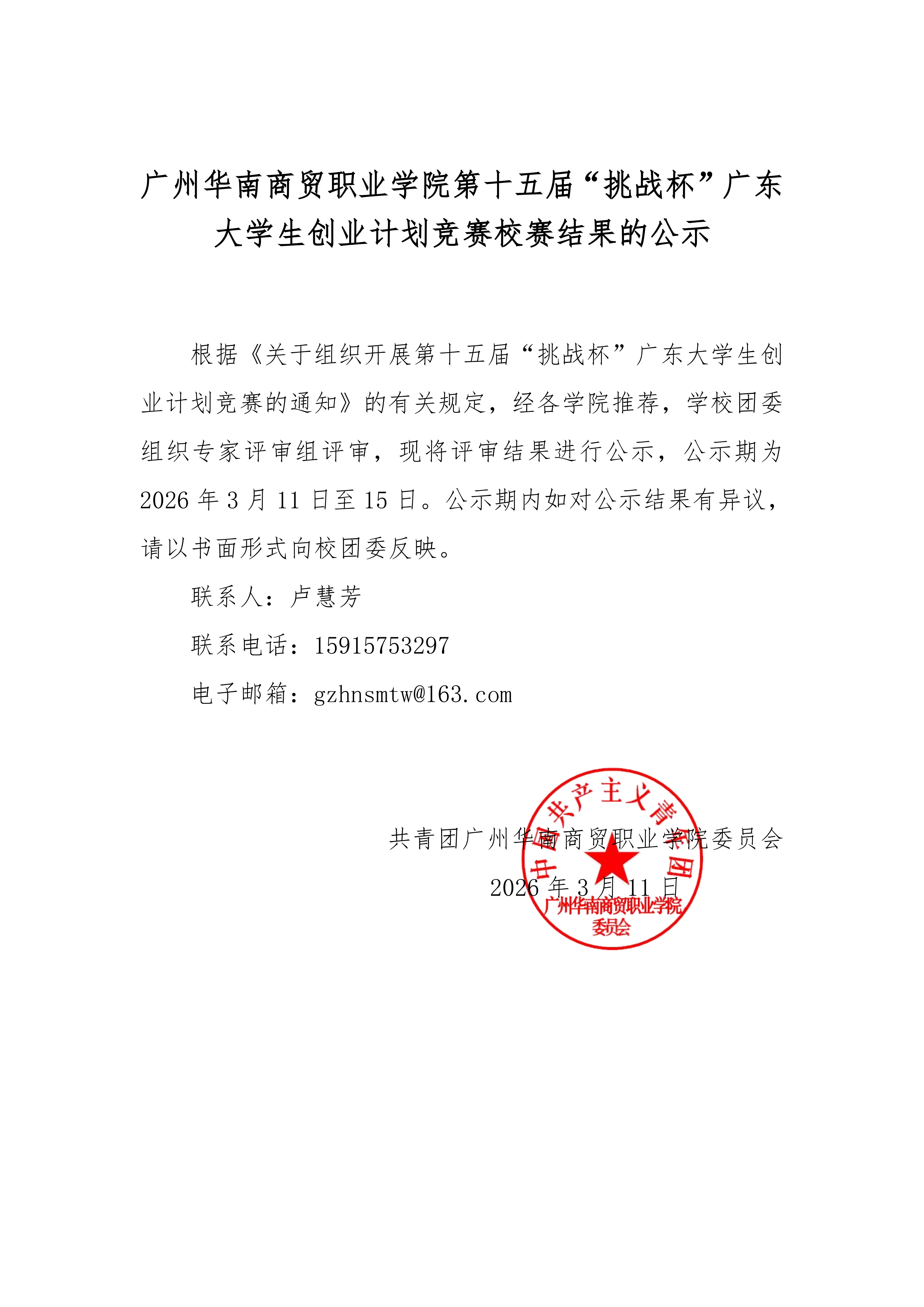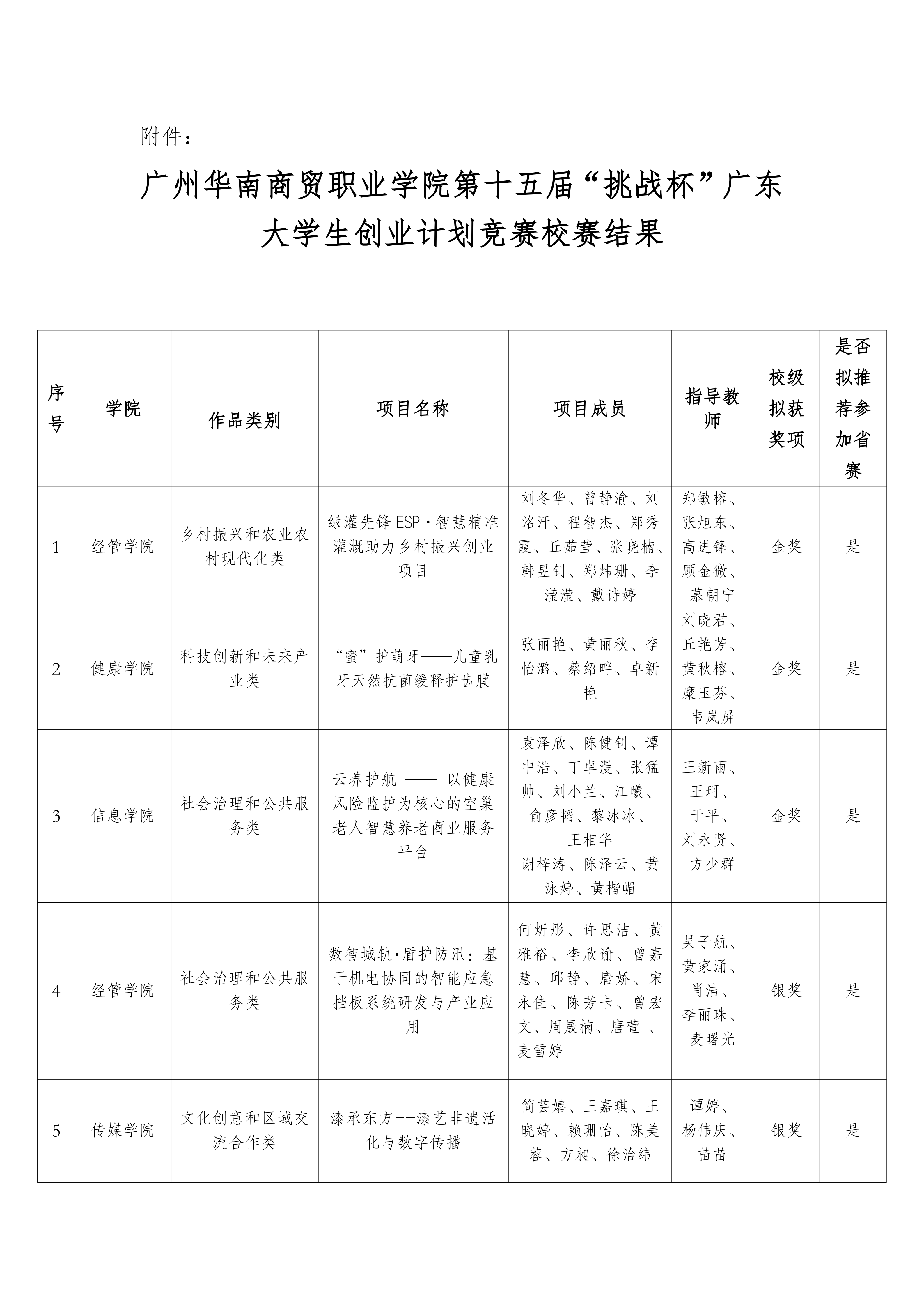 广州华南商贸职业学院第十五届“挑战杯”大学生创业计划竞赛校赛结果公示