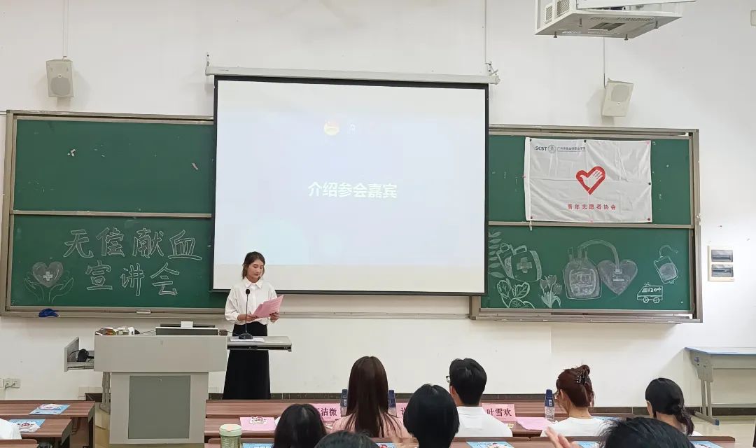参加本次献血宣讲会的老师和嘉宾有:校团委许诚栋老师,校团委叶雪欢老师,广州血液中心王洁微医生。