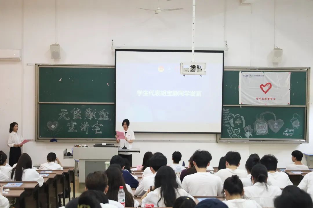 随后,宣讲会特邀广州血液中心王洁微医生为同学们进行专业且全面的讲解。从血液的基本知识、献血的科学流程,到献血对健康的益处以及献血后的注意事项,用通俗易懂的语言,结合生动的案例和直观的图片,为大家答疑解惑。同学们全神贯注地聆听,不仅对献血有了更深入、更科学的认识,也消除了心中的顾虑与担忧。