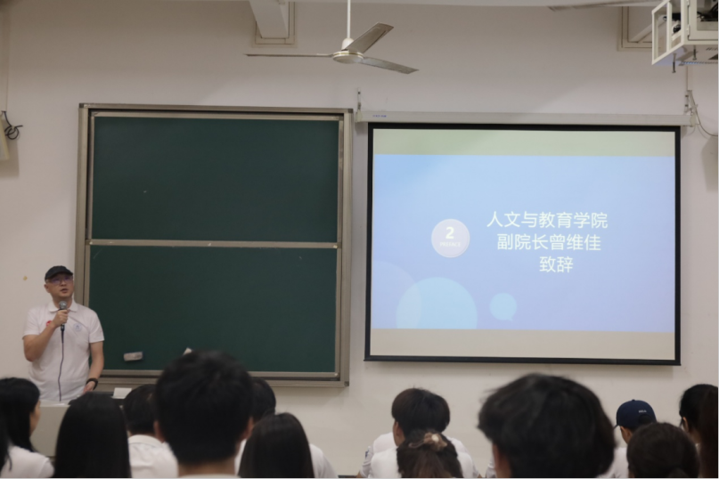 人文与教育学院副院长曾维佳为大会致辞,对手球协会的成立表示热烈祝贺,并勉励全体成员发扬体育精神,为校争光。