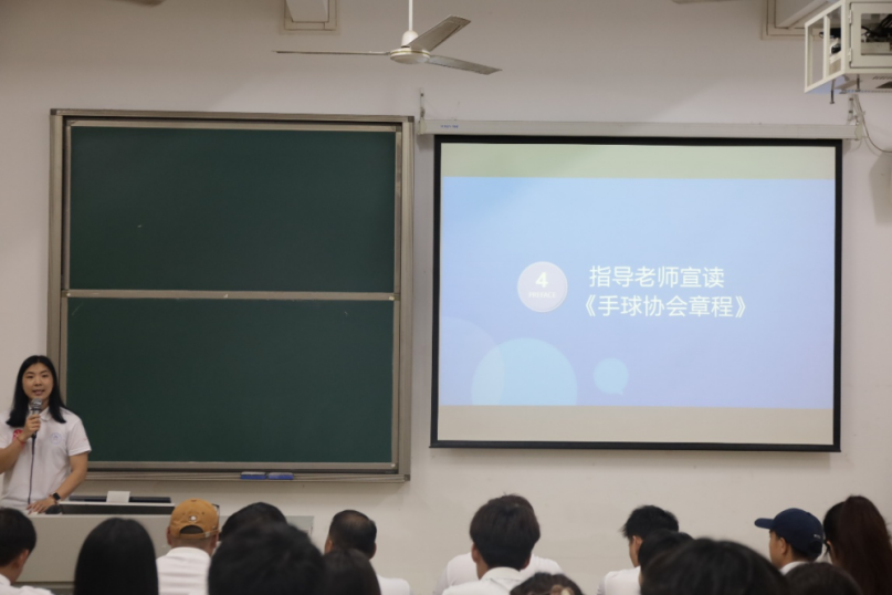 指导老师马静仪宣读了《手球协会章程》,明确了协会的宗旨和规范。