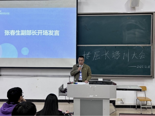 为进一步提升宿舍管理精细化水平与服务保障质量,着力营造安全有序、文明和谐、积极向上的住宿环境,充分发挥宿舍这一学生在校学习、生活、休憩核心场所的思想政治教育与综合素质培养功能,校自律委员会宿管部于12月16日正式开展全体楼层长工作培训会,为新任及在岗楼层长全方位履职赋能,助力楼层长切实承担起连接学校与同学、维护宿舍安全稳定、推动优良舍风学风建设的重要责任。