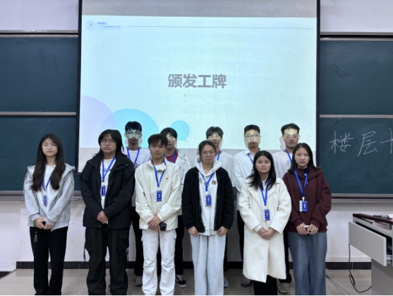 培训进入尾声,现场氛围庄重而热烈,全体楼层长依次登台领取专属工牌。这枚工牌不仅是楼层长身份的直观标识,更承载着学校的信任与全体住宿同学的殷切期望,成为一份沉甸甸的责任象征。