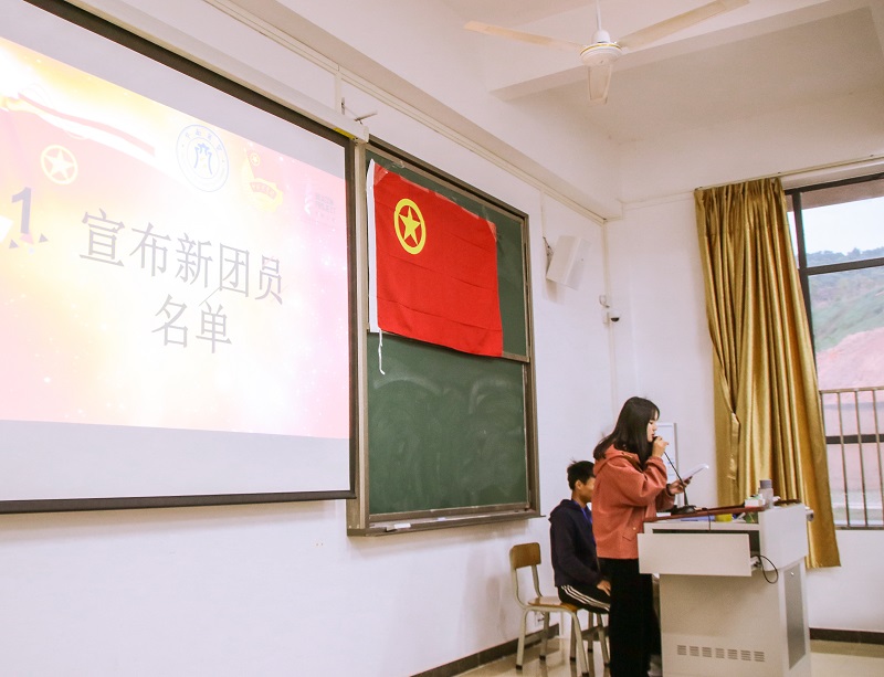 下午5:30,入团仪式正式开始。首先由院团委组织部宣读新团员名单,一个个名字如同跳动的火苗在新团员们的心中燃烧着。接着迎来了最激动人心的时刻:由陈胤副书记带领新团员进行宣誓。每位新团员的内心激动溢于言表,表现出每个人都充满着对团组织的向往。随后,新老团员代表纷纷上台发言。老团员代表对新团员的加入表示热烈的欢迎,并对新团员们提出一定的要求,希望新团员们能够薪火相传,严格要求自己;新团员代表也表示:“加入共青团是一件无比光荣的事,并表示会在未来的团组织工作、学习和生活中积极发挥团员的先锋模范作用。”
