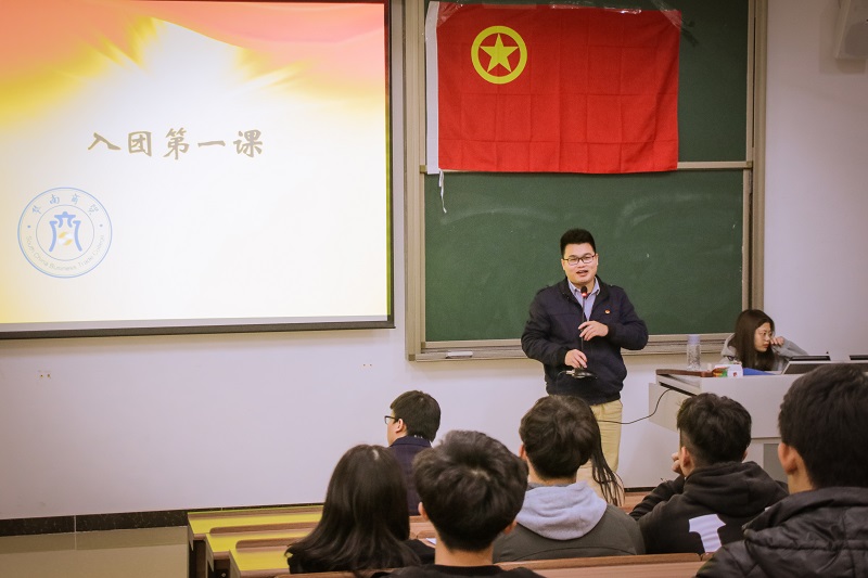 为深入贯彻落实习近平新时代中国特色社会主义思想和党的十九大精神,进一步抓好团员发展工作,坚持严控发展规模,严格入团程序,规范入团仪式,我院团委于2018年12月11日下午5:30在白云校区教学楼1-102举行了新团员入团仪式暨入团第一课。出席本次仪式的有院团委钟法声书记、院团委陈胤副书记、各系团总支书记和各系新老团员代表。