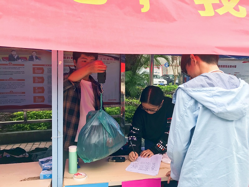 当天早上8:00,青协的志愿者们早早布置好摊位。鲜艳的条幅吸引着同学们的视线,点燃了同学们的捐赠热情。此后,前来捐衣的同学络绎不绝。志愿者们一边认真记录捐衣者的个人信息,一边对也对他们表达真诚的感谢。同时,志愿者们也开展了“一元捐款”活动,捐款所得将用于广州至灵学校的文具捐赠。通过志愿者们的不懈宣传和同学们的积极响应,截止于下午6点活动结束,本次活动共募捐到衣物777件衣物,鞋子14双,帽子8顶、包包5个,募捐所得将用于广州慈善会下的“普爱康复巴士服务项目”。