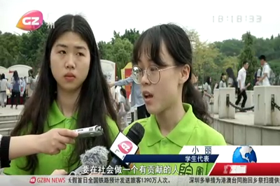 据悉,出席本次专题系列展览启动仪式有部分广州市直机关同志、烈士亲属代表、劳模代表、各校学生代表等近300人。环球视讯、广视新闻等广播电视台对“启动仪式”进行了相关报道。其中,我院团学干部代表接受了电视台的采访,我院团学干部代表在采访中提出:“我们新时代新青年要在社会做一个有贡献的人,不辜负先烈的牺牲。”