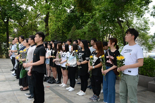 下午,师生代表怀着无比崇敬的心情,来到银河烈士陵园广州文总六烈士墓前。活动伊始,秦馆长首先详细讲解了广州文总六烈士的英勇事迹。在场的师生们无不为之动容。紧接着,全体师生为广州文总六烈士默哀一分钟,以此表达对革命烈士的缅怀之情。默哀完毕后,由团委钟法声书记致哀悼词。钟法声书记在哀悼词中提到:此次活动,是为了悼念为中华民族解放和人类和平幸福事业而英勇牺牲的烈士、是为了深切缅怀他们的光辉业绩、是为了学习弘扬他们坚贞的民族气节、高尚的道德品质和伟大的献身精神。并号召全体师生应当发扬革命光荣传统,继承先烈的遗志,从身边做起,从小事做起,心怀奉献,诚信文明,用我们的实际行动,告慰烈士的忠魂。让我们化悲痛为动力,沿着先辈们留下的光辉足迹,积极进取,励志勤学,为了祖国的辉煌明天,贡献出自己的一份力量。接着,全体师生为革命烈士献花,再次表达对革命烈士的崇高敬意。