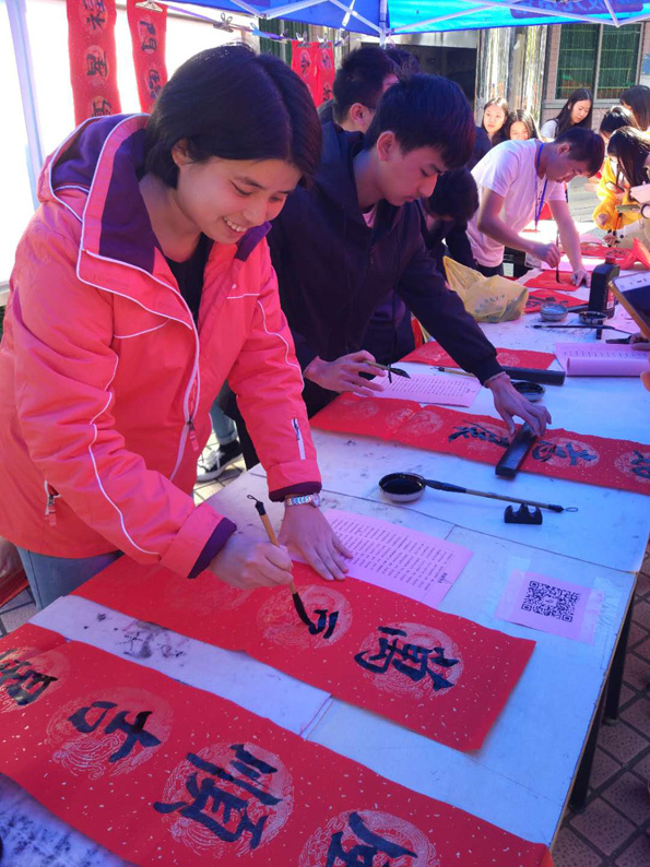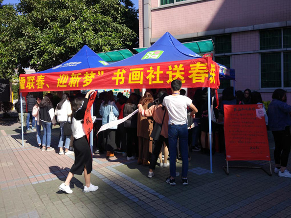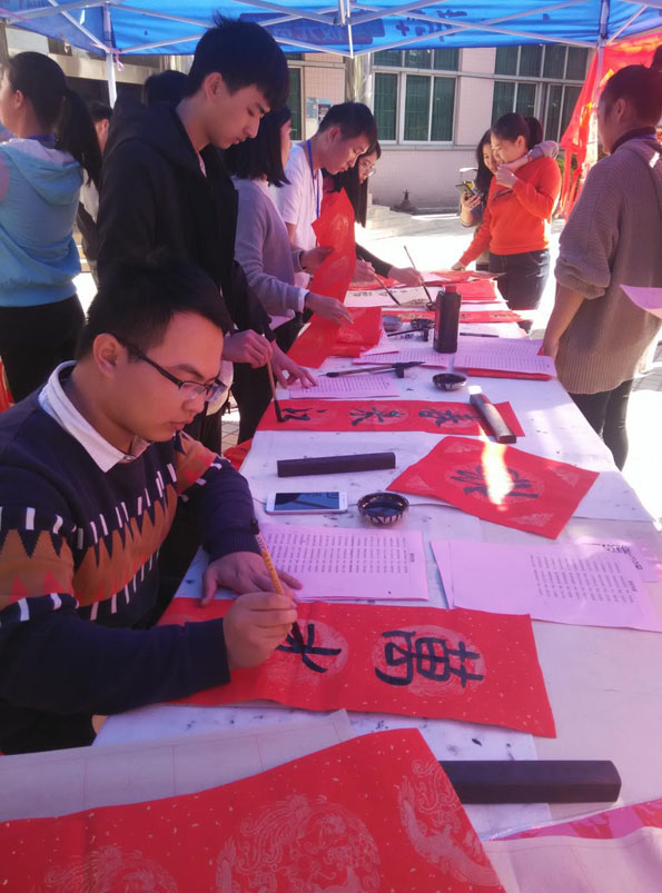 为了宣传中华民族优秀传统文化,发展国家非物质文化,丰富校园生活。在新春来临之际,学院书画协会于12月21日至22日在教学楼前举办了“楹联春·迎新梦”送春联活动,与全院师生共迎新春,将爱心传遍校园,让温暖弥漫你我他!