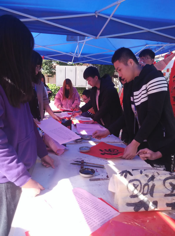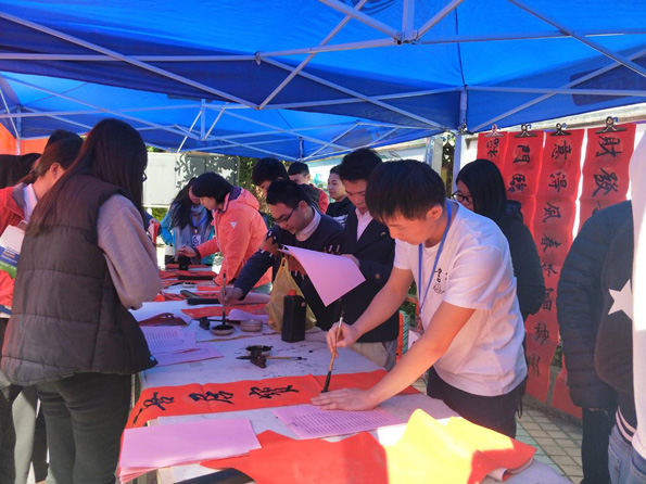 书画协会全体同学在活动开始之前做好了充分的准备,用热情、微笑接待每一位前来参与活动的师生,用深厚的书法功底为每一位前来参与活动的师生书写春联、福字。