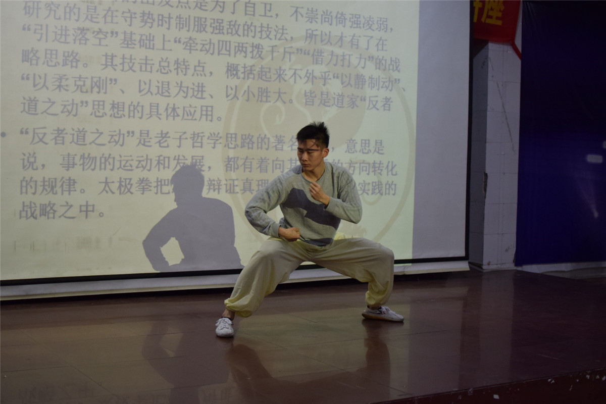 此次讲座可谓是别开生面,非常精彩,在整个讲座过程中,同学们都认真听讲和思考。在互动环节中,同学们都积极提问,针对提出的问题张晓武老师均做了详细解答。通过此次讲座,同学们了解了传统体育太极拳的养生与技击的相关知识,可谓是获益匪浅,感受颇深。