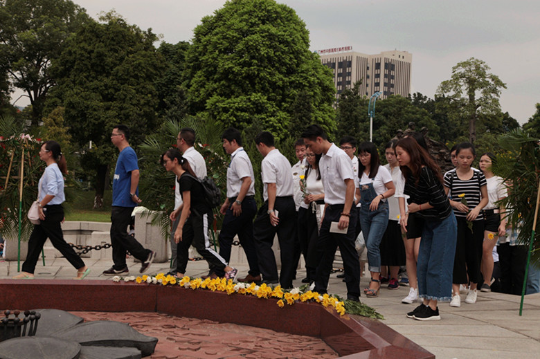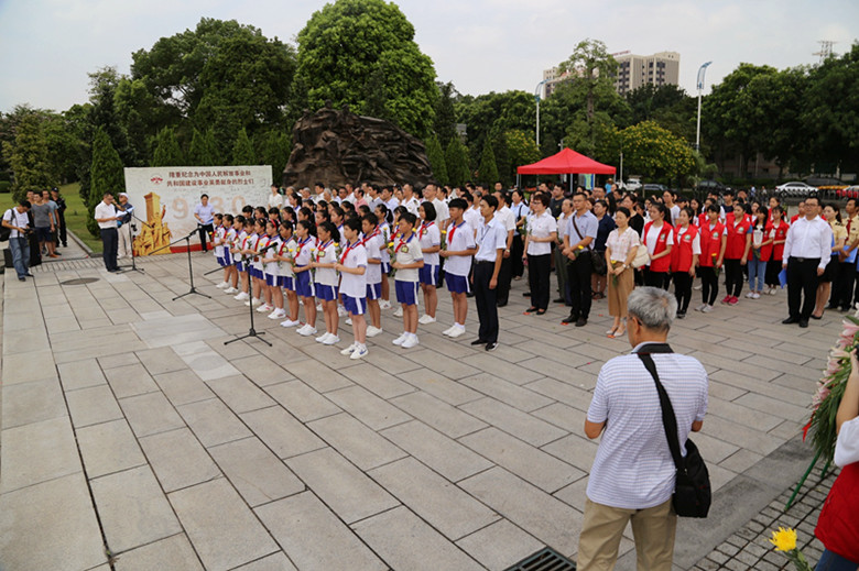 为缅怀革命先烈,弘扬民族精神,激发爱国情怀。9月30日上午9时30分,广州市民政局、广州市总工会在市银河烈士陵园广场联合举办“缅怀烈士功绩,传承不朽精神——烈士纪念日公祭仪式”,深切缅怀革命先烈的丰功伟绩。市民政局、市总工会、市银河烈士陵园管理处等负责人,老战士及烈属、劳模、职工、学生、共青团员和志愿者代表等,近200人参加了公祭仪式。其中,我院人文与外语系团总支陈丽戎书记带领20名共青团员参加了此次公祭仪式。