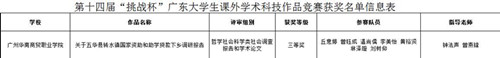 我院荣获第十四届“挑战杯”广东大学生课外学术科技作品竞赛三等奖