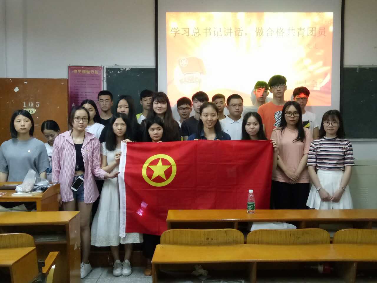 为弘扬五四精神,迎接中国共青团成立95周年的到来,引导同学们认真学习领会习近平总书记对青年一代的重要要求和殷切期望,励志勤学、刻苦磨炼,不忘初心跟党走,做合格共青团员。我院于2017年5月4日下午14:00在教学楼105召开团员宣誓大会。出席本次大会的有院团委张琪,各班团支书、23位新团员以及部分老团员。