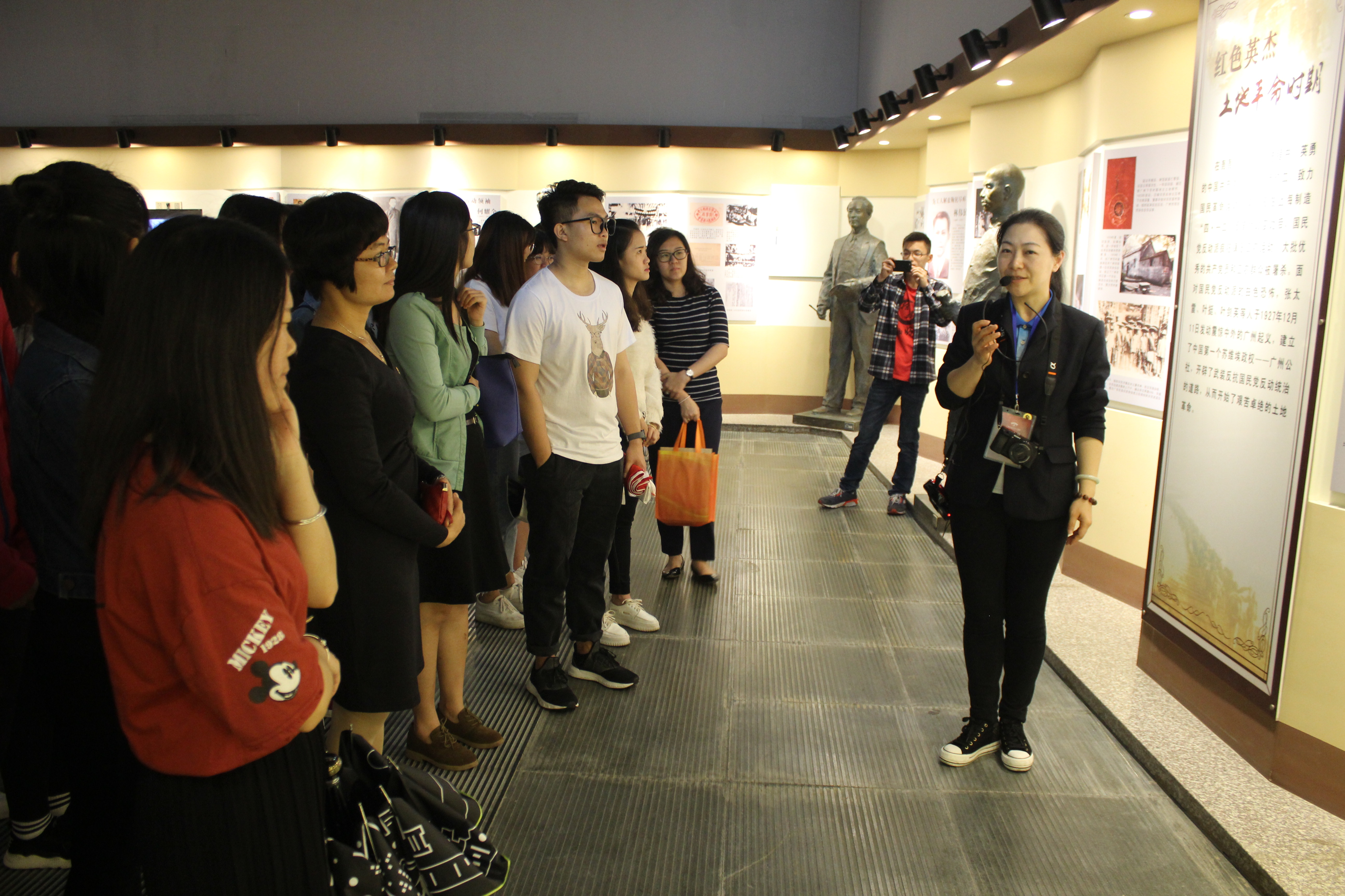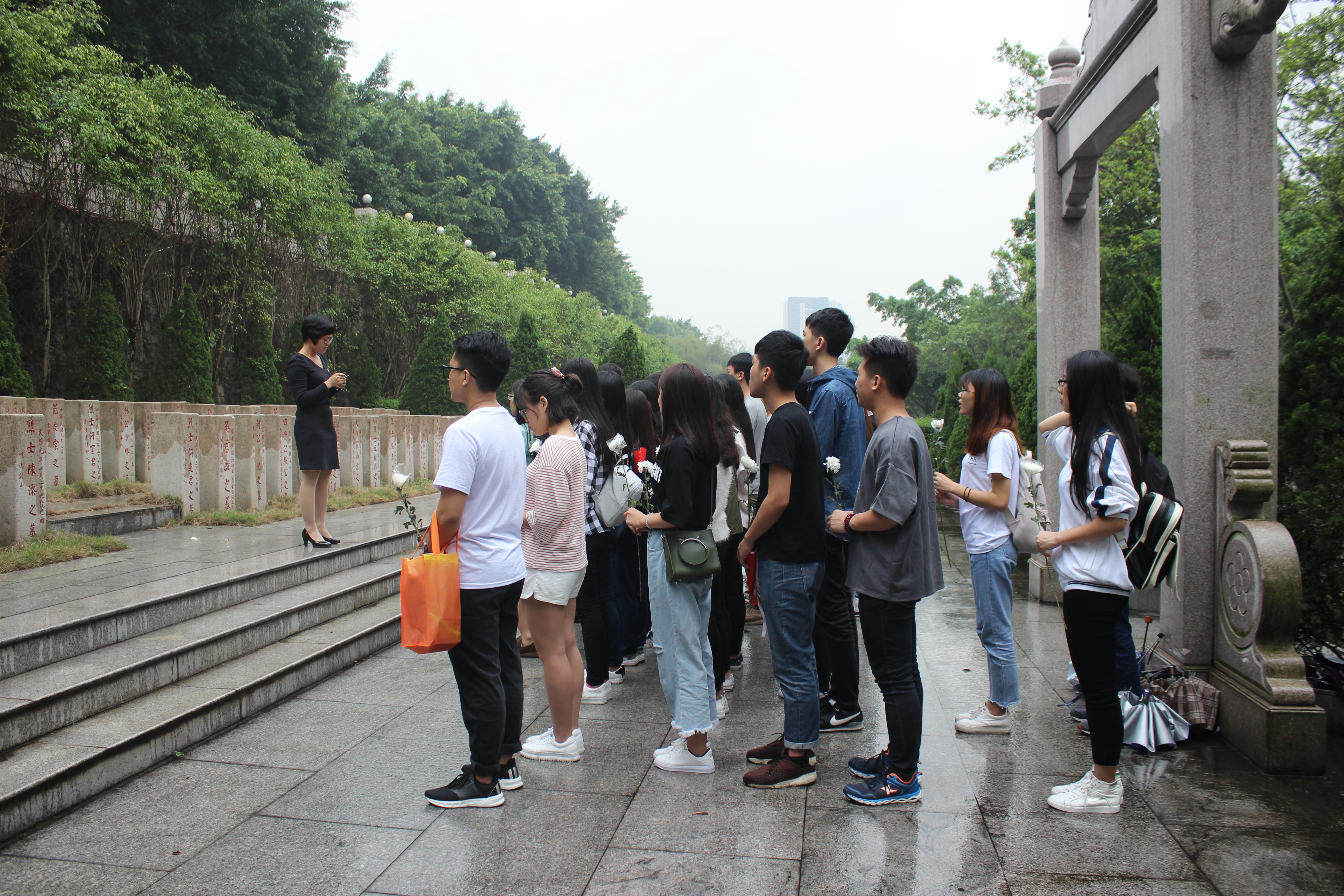 到达陵园后,在烈士纪念馆秦副馆长的带领下,师生们先观看了文总六烈士的视频,随后,由广州新四军研究会副团长耿博士和文总烈士的后人李胜利老师为我们讲述先烈们的故事。两位老同志含着泪,深情地讲述,感染着在场的师生。同时引导青年学生要深刻认识历史、感悟历史、牢记历史,鼓舞和激励他们继往开来,为实现中华民族伟大复兴的中国梦而努力奋斗。