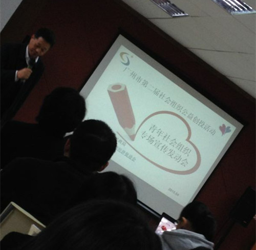 4月9日,第二届广州市社会组织公益创投活动之青年社会组织专场宣传发动会在广州市青年文化宫举办,我院青年志愿者协会在广州市菁善会志愿服务队的带领下参加了会议。本次大会由广州市社会组织联合会与广州市创意经济促进会联合举办,与会者为社会各志愿者组织。