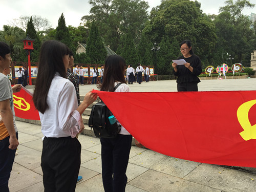 在清明节到来之际,为悼念革命烈士,缅怀革命先烈的丰功伟绩,2015年4月2日下午,在我院行政第二党支部的带领下,各系团总支书记、院团委、学生会及各系学生代表共45人,赴广州黄花岗七十二烈士墓开展“祭先烈 寄希望”清明扫墓活动。