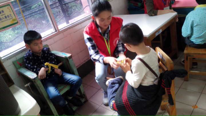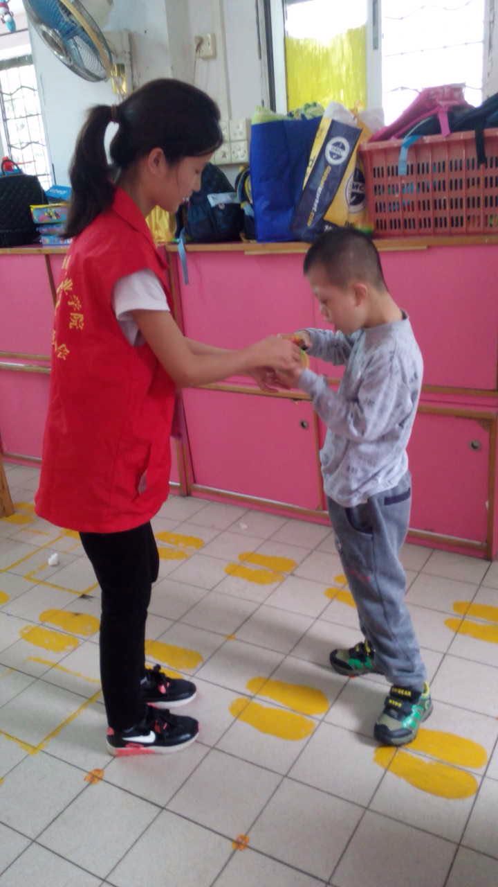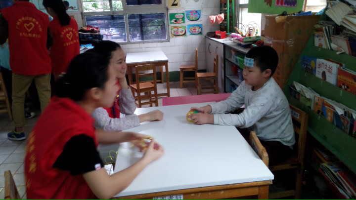 今天下午14点,志愿者们到达至灵学校。在活动开始前,因顾及到活动对象是智障儿童,为了使活动顺利开展,青年志愿者协会组织志愿者们集中培训,培训内容主要围绕如何安抚智障儿童的情绪、如何处理突发事件等。 活动中,志愿者们采取一对一模式,教他们画画唱歌,陪他们做游戏,帮助智障儿童提高生活自理能力,丰富他们的生活。同时,帮助他们更好地了解社会和与外界沟通,树立正确的人生观。当然,在帮助他们的同时,也激发了青年志愿者们对社会公益事业的责任感和自信心,将雷锋精神发扬光大!