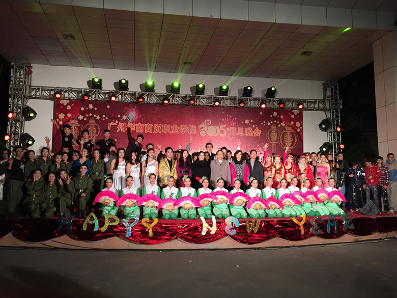在这个欢乐的夜晚,在全院师生的祝福下,我们将送走硕果累累的2014,迎来满怀信心与希望的2015。正如书法表演展示对联 “八骏争春南粤古城添翠色,五羊献瑞华南商贸谱新篇,”表达的祝愿那样:华南商贸学院将带着对新的希望和憧憬,踏上新的征程,明天会更好!